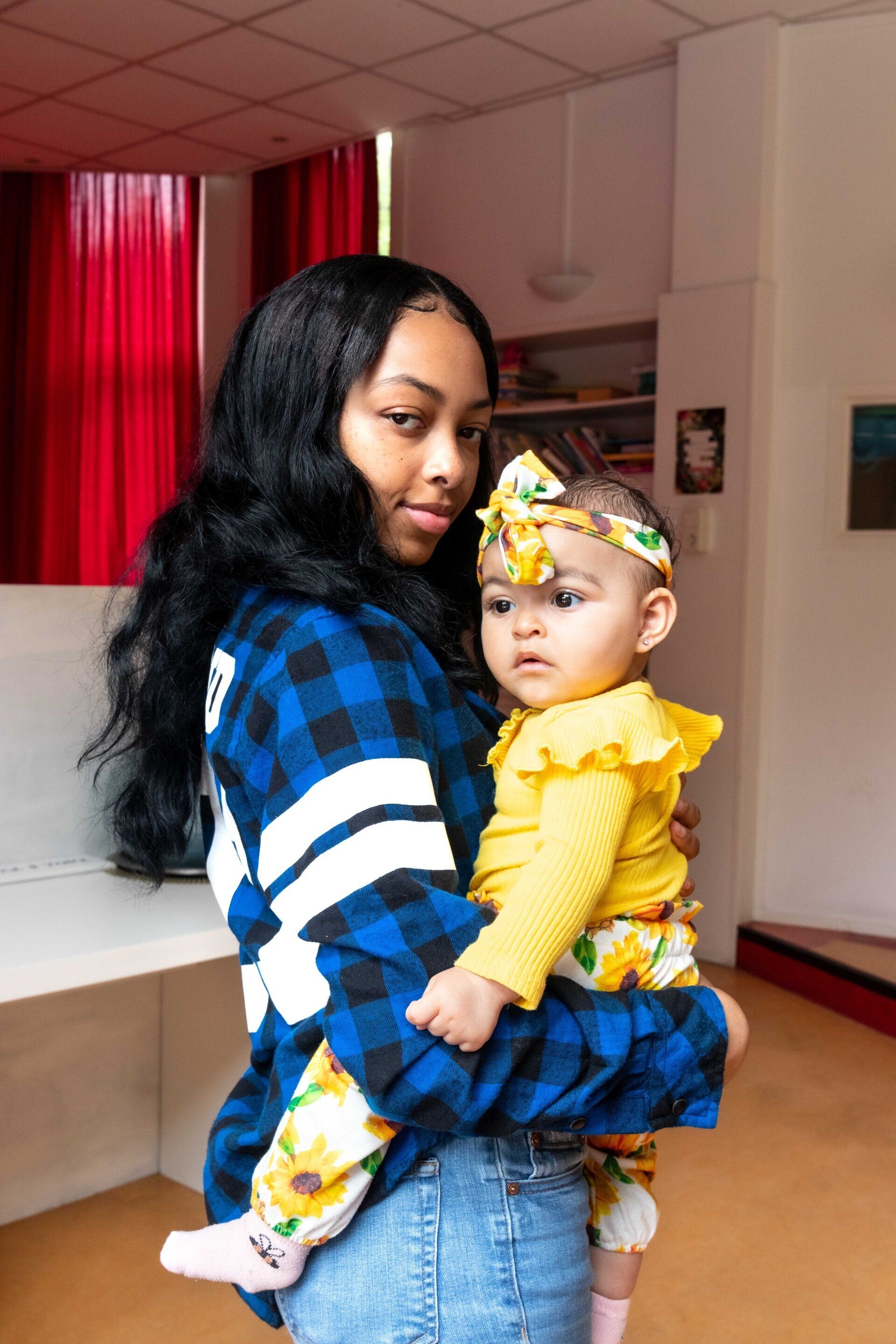 Bovenstaande fotoserie toont het dagelijks leven dat de jonge moeder Jennifer (22) met haar dochtertje Jahanaira (8 maanden) heeft bij Zij aan Zij.